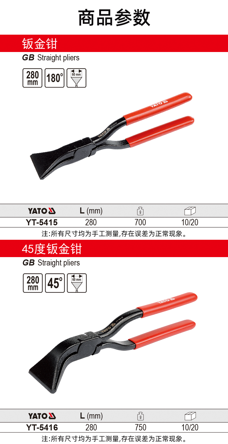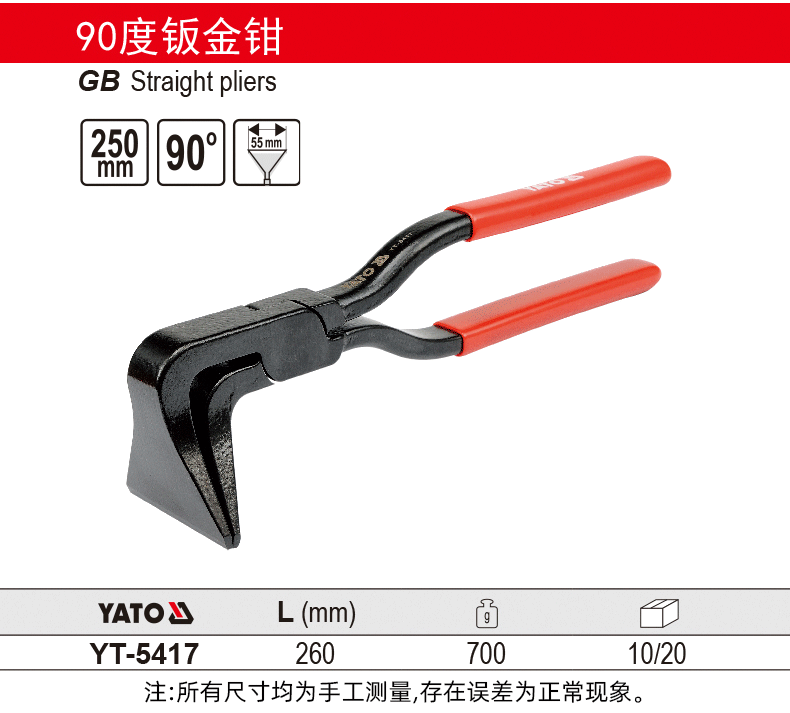 商品名称: 易尔拓/YATO YT-5417 . 90度钣金钳L 280MM 1/把