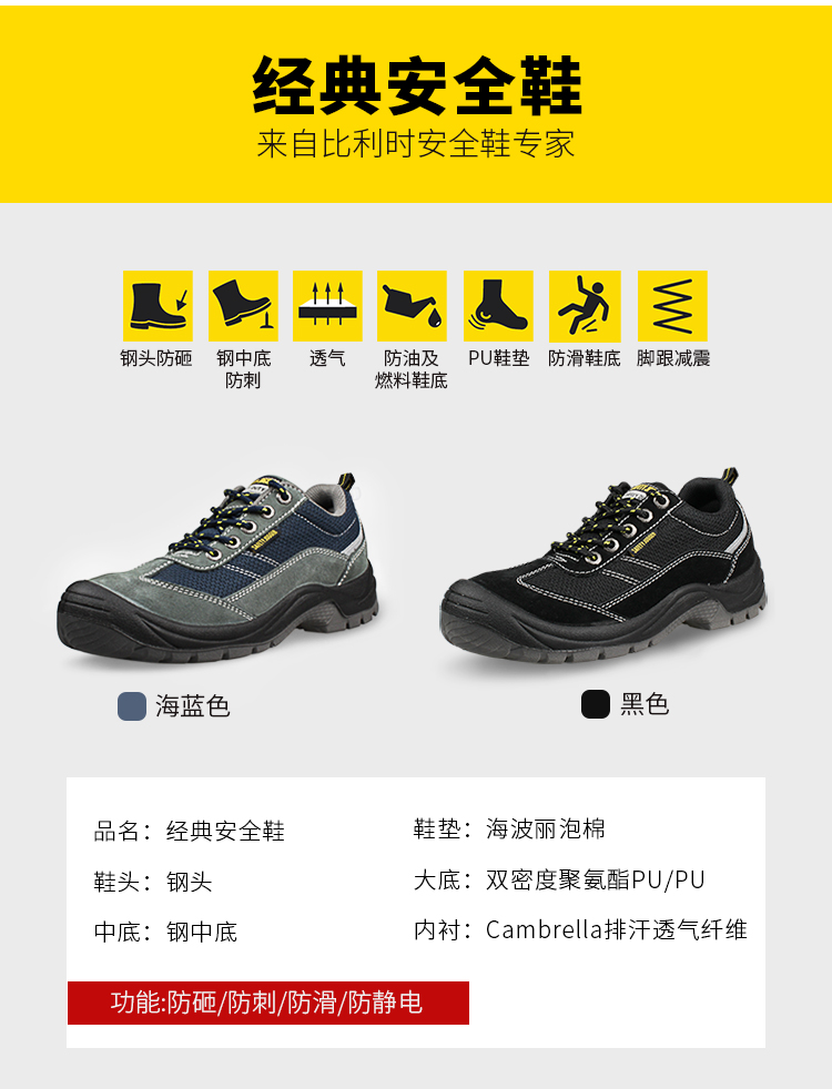 • 商品名称:鞍琸宜/SAFETY JOGGERS 藏青色^202201110082 ^ Gobi防砸防刺穿防静电低帮藏青色安全鞋 35-46